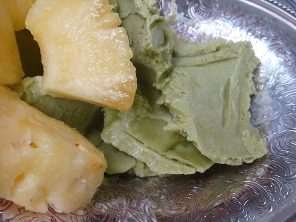 社員旅行のロンドンで買った器に入れてパイナップルと一緒に美味しく頂きました。
