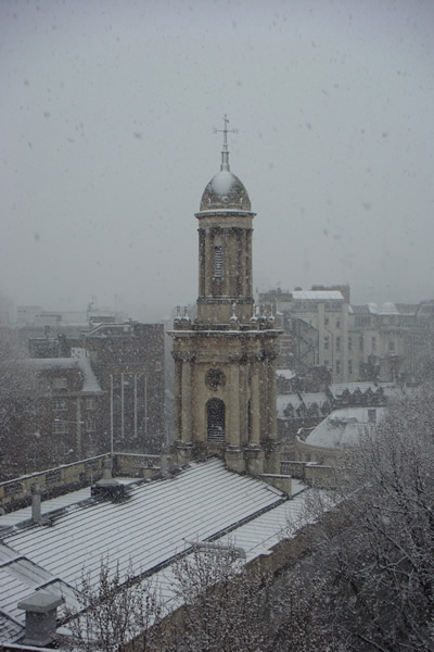 3日目だったかな、朝起きたらいきなり大雪!!ホテルからの景色です。